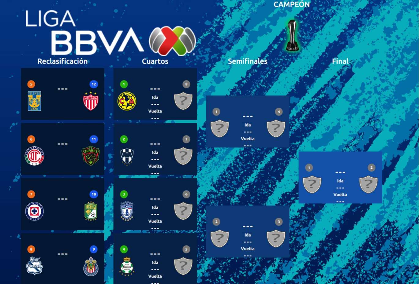 Liga MX Así se jugarán los cuatro partidos del repechaje de la liga , A partir de aquí, se definirán los rivales para los primeros seis equipos de la tabla, continuando con las etapas habituales de semifinales y la gran final para determinar al campeón.